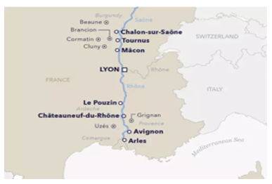Lyon – Macon – Chalon-sur-Saone – Avignon – Arles – Chateauneuf-du-Rhone – Lyon